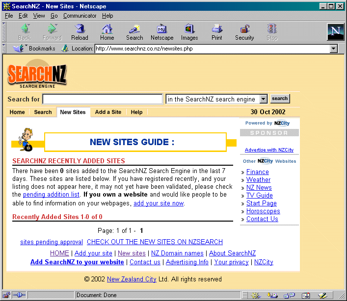 Sites page at SearchNZ for instance. As of this morning it was telling me