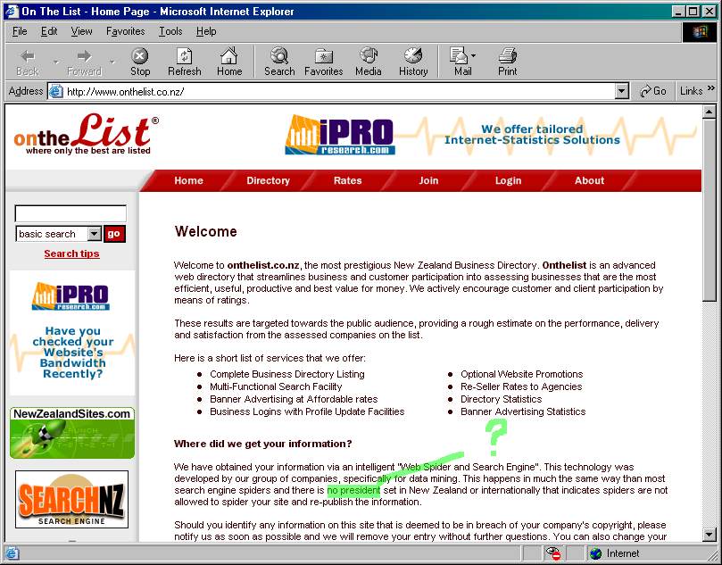 to be another of their hosting clients, onthelist.co.nz has spammed local