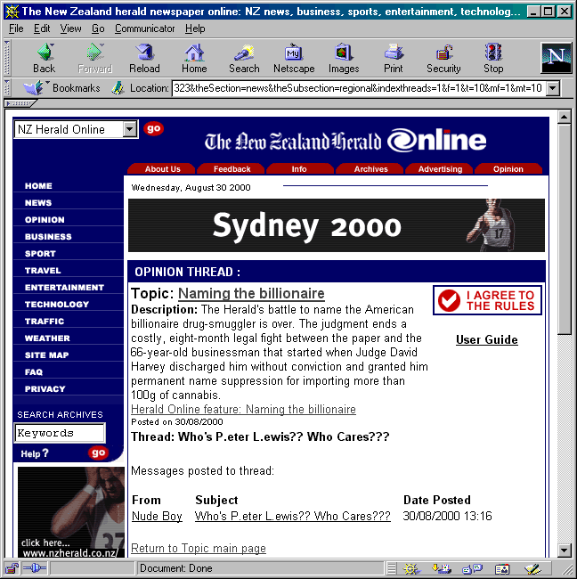 "Nude Boy" who posted the information to the NZ Herald website's discussion forums.