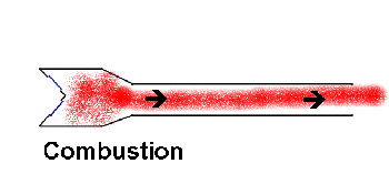 2. Combustion ![]() During this phase the burning gases expand and travel down the tailpipe, exiting at the rear of the engine. The force of the gases leaving the engine in a rearwards direction creates an equal and opposite force that tries to move the engine forwards -- this is thrust.